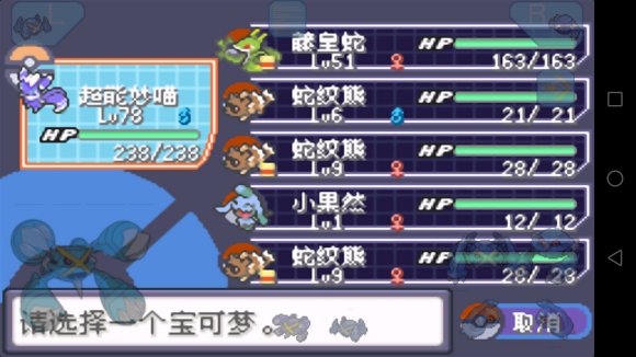 现在可以查看宝可梦背包,看到包里有两只带道具的宝可梦,就可以安心离开房间,存个档了。