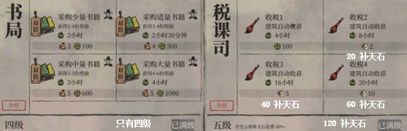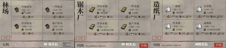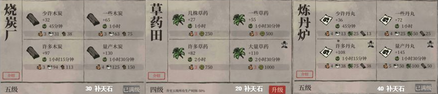 资源的最大库存量。开局 6 个造满,能升级就升级,自行考虑是否用补天石满级。