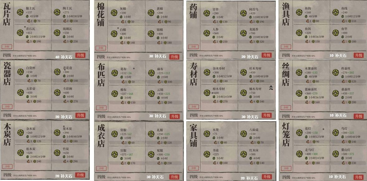 其他商业建筑按照任务指引做任务就可以,升级与否不影响游戏进度,等大后期资源劳力都用不完可以再考虑将其升至满级。
