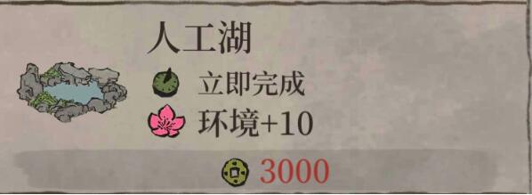 人工湖是玩家自己自由组合的装饰建筑,想建多大就建多大,并能够根据自己的想法进行布局。