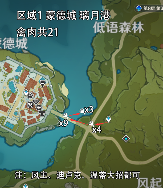 因为地图上禽肉很多,这里就挑两个巴适的一路线,而且可以一只不漏,只需要有大的时候传送过来大一下即可