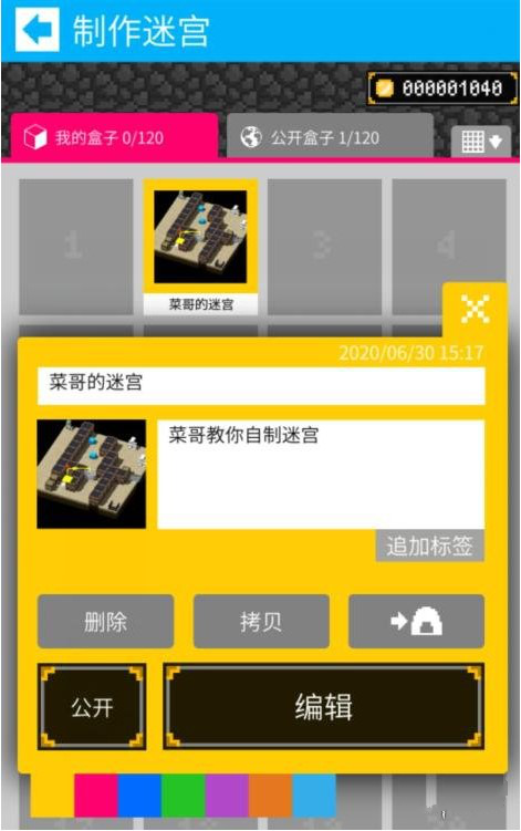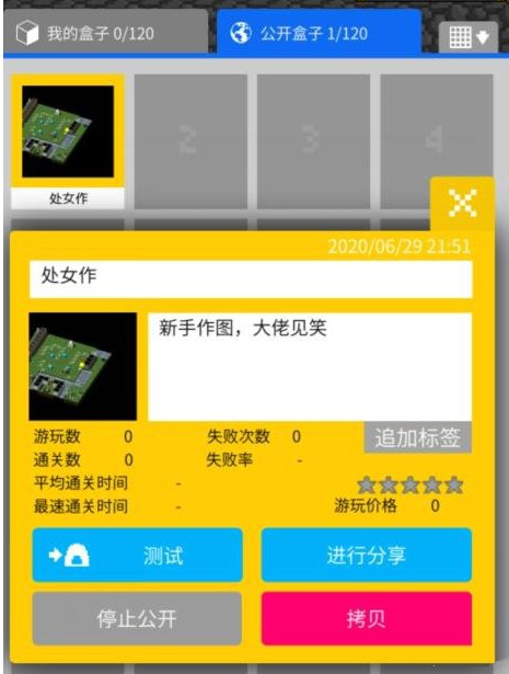 测试完成之后就可以点击【公开】,将你制作的地图开放给全世界的玩家挑战。