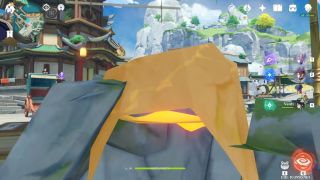 那么要怎么找到宝玉呢?很简单:穿模视角。所谓开璞石,其实是开石珀,商人给出的三块都是石珀的原石。而米哈游很友好(偷懒)地真的把石珀的模型拿了过来,因而我们可以直接穿模在原石里面找石珀。