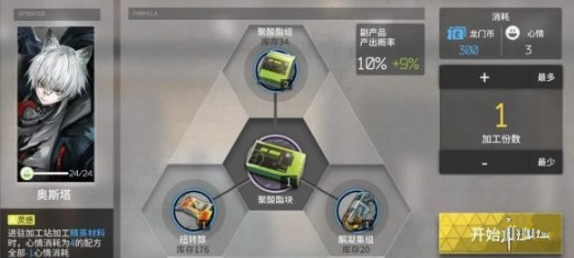 合成聚酸脂块时只需3心情,副产品产出概率19%。在加工紫色材料聚酸脂块时,可以考虑使用年。在大量加工蓝绿色的聚酸脂组与聚酸脂时,请使用奥斯塔。