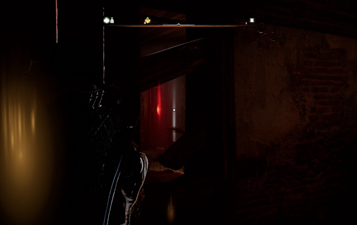 破坏二层的木板墙后通过洞口破坏门闩,进入房间获得装备。