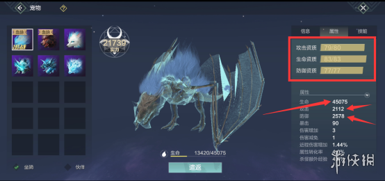 可以发现宠物的攻击,生命和防御都有大幅度提高,就是因为资质提高了。