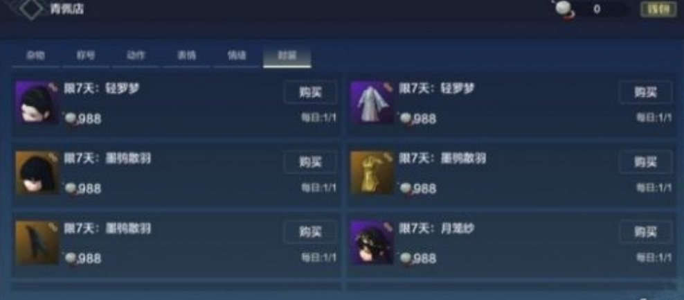 青佩可以在青佩商店中兑换指定的稀有商品,青佩每日最多获得2000枚。