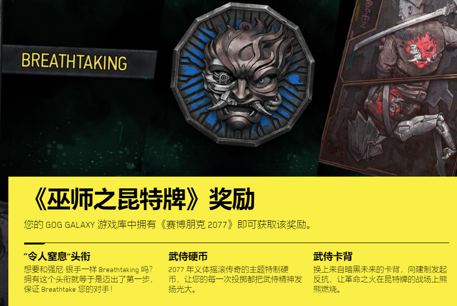 一个 GOG 帐户只能注册一次《赛博朋克 2077》“我的奖励”。