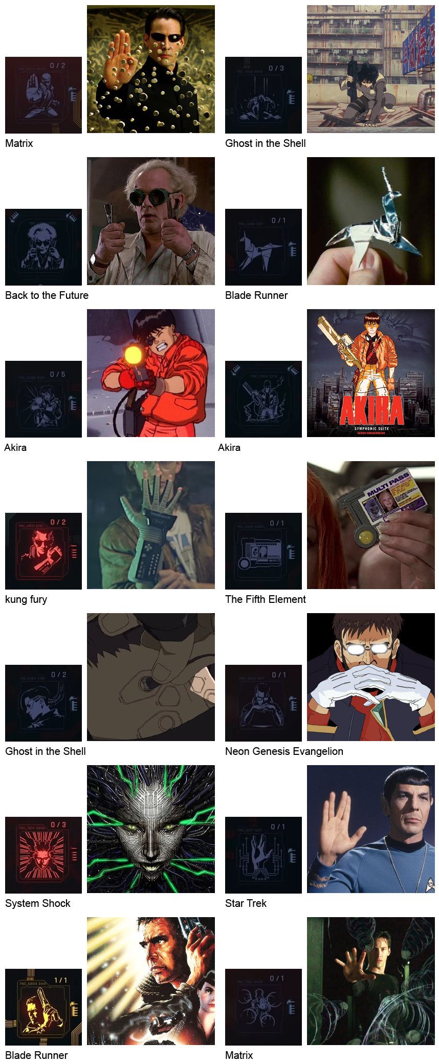 上图就是赛博朋克2077中致敬的所有电影彩蛋。