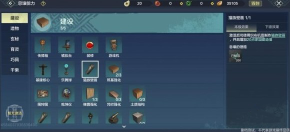 其中有筑基强化、墙壁强化、凭栏强化、望轩强化、脊檐强化、基建核心、基建精通等。