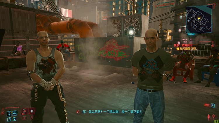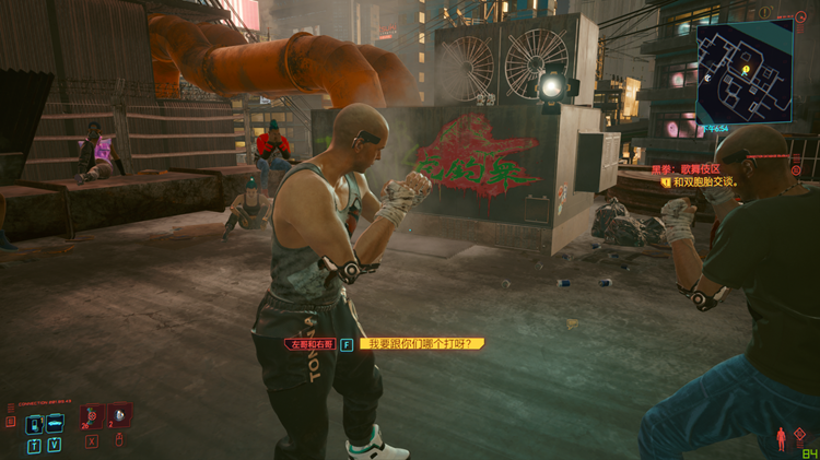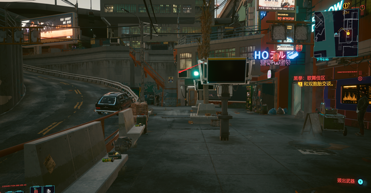 黑拳歌舞伎区任务攻略首先你要完成序章,第一幕后V 出来宿舍后按照主线 找杰克的路线, 你就会经过图下个地方。
