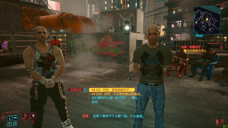 拳台上面会有一个大汉,会跟V说:V要不来试两手。你走过去,他还会继续和你聊天。