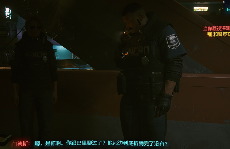 当你凝视深渊时任务教学首先下面会有两个NCPD的人,你听他们谈话,然后就会问你,你认识巴里么