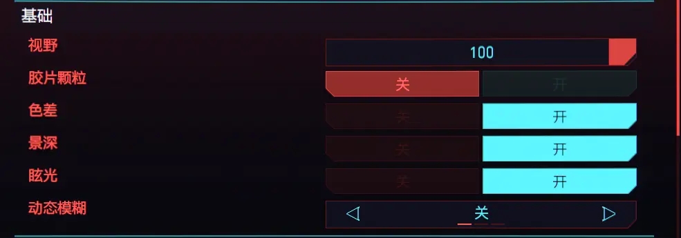 2.视野100 游戏内晃动频繁,视野过窄会导致头晕。
