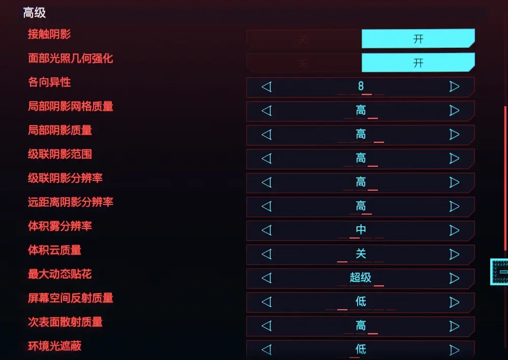 其余为了增加真实感可以开也不影响帧数,这里供玩家自己调整