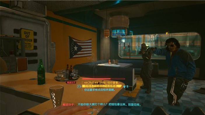 你可以选择替餐馆老板付钱(2900欧元)或选择威胁他们的桥段(需求8点体质值)和平解决掉这场危机。