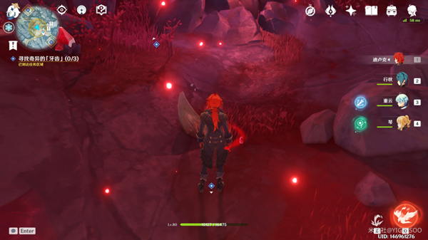 到达箭头指向的地方打败愚人众再到下图所示位置即可拿到牙齿解锁世界任务【腐殖之牙】