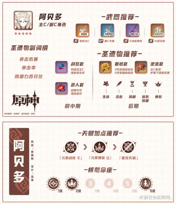 所以在后台的时候阿贝多也是会有暴击、暴伤的加成,