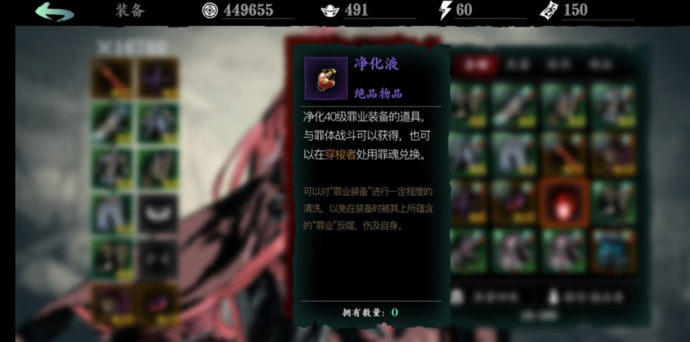 打倒”罪体”会获得一系列被污染和诅咒的武器和专属装备一“罪业装备”,这是一种异常可怕的强力装备,需要净化后才能使用,同时上面蕴含着非常剧烈的负面效果。