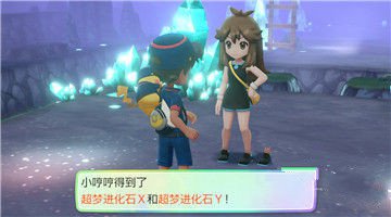 来到最深处果然发现一个小女孩碧蓝,获得超梦进化石X和Y