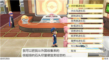 联盟的宝可梦中心有个石头专家在出售各种宝可梦超级进化石