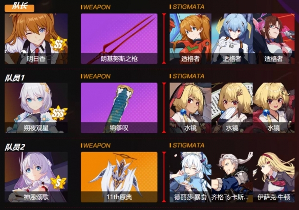 鉴于角色不适合记忆战场,故只推荐1套深渊中的常见阵容(明日香需要达到SS才能打出效果):
