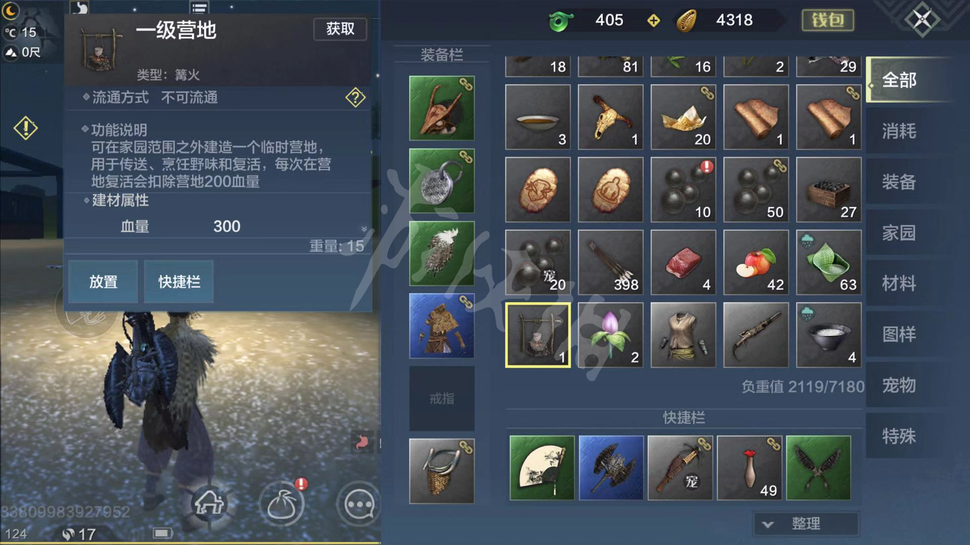传送营地的前提是放置一个营地,在合成中可以制作。