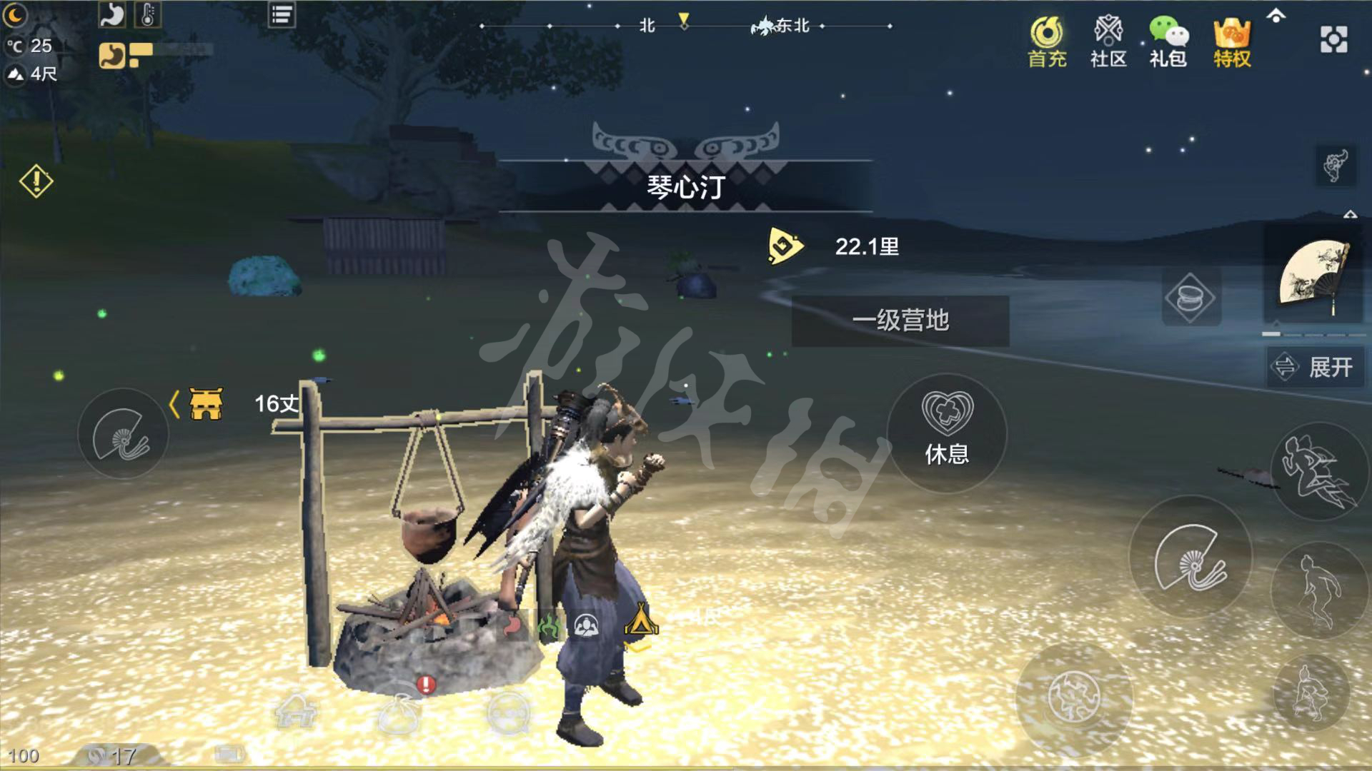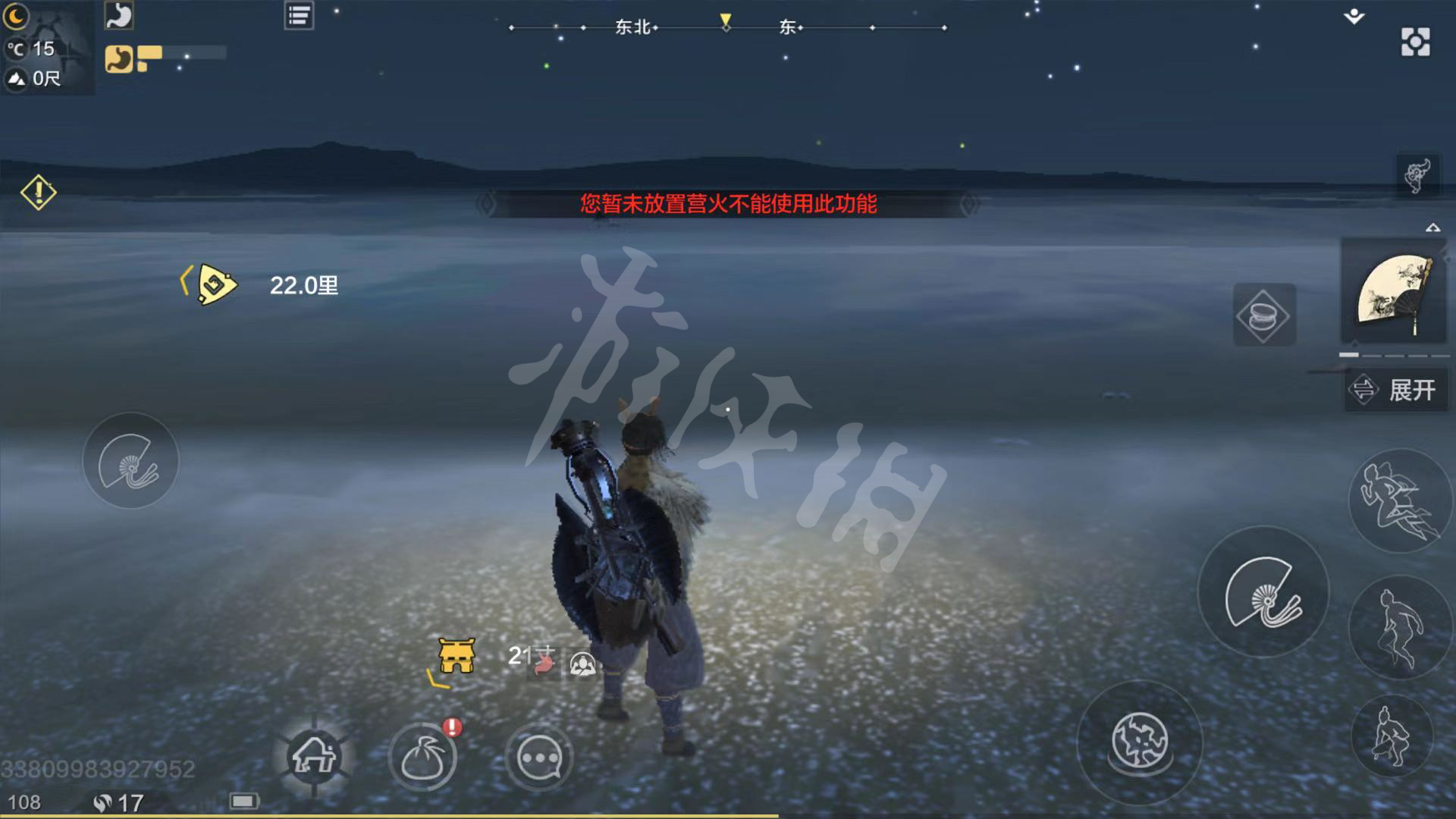 如果没有提前放置上方就会出现“暂未放置营火不能使用此功能”的提示。