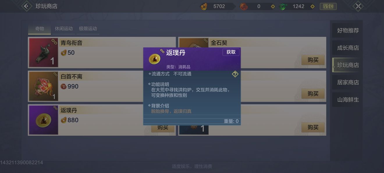 返璞丹可以在珍宝商店里880婴玉购买。