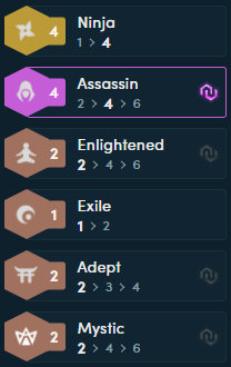 4忍者:忍者们获得额外+140攻击力和+140%法术强度,只有场上恰好有1/4名不同的忍者时才激活。