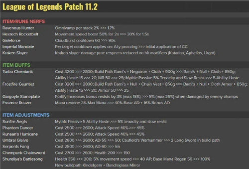 街机cn 来源:厂商 发表于:2021-01-16再过不到一周的时间英雄联盟就要进入11.2版本了,这一次的更新中有非常多的装备、英雄进行了改动,设计师MarkYetter也预告了11.2版本的改动,下面就带大家看看具体内容。
