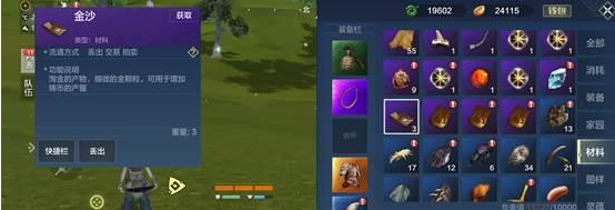 值得注意的是,各位旅者在选择淘金地点时要注意地面的闪光点,有闪闪发光的地方才是可能有金沙的地方,如果附近找不到闪闪发光的点,说明附近金沙已经被人挖走了。只能挖出一些基础材料,比如木材,石头。