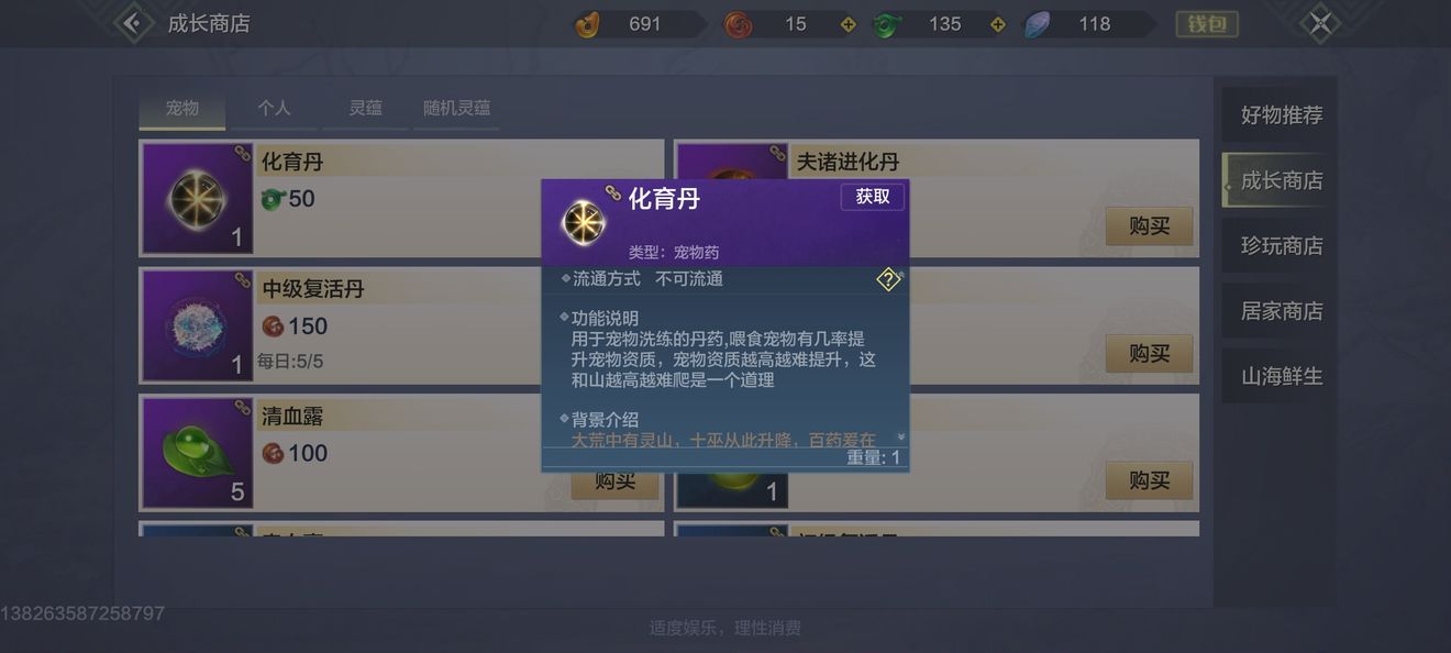 注意,如果你对一个宠物使用了化育丹之后,那么之后即使是你放生了这只宠物,化育丹也是不会返还的。