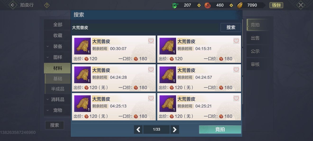 大荒兽皮:击杀百年以上巨兽进行扒皮可获得大荒兽皮,也可在拍卖行购买,或者是好友赠送。