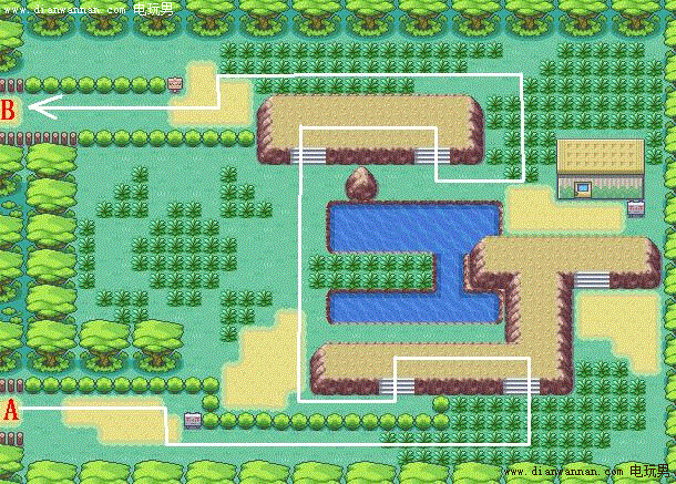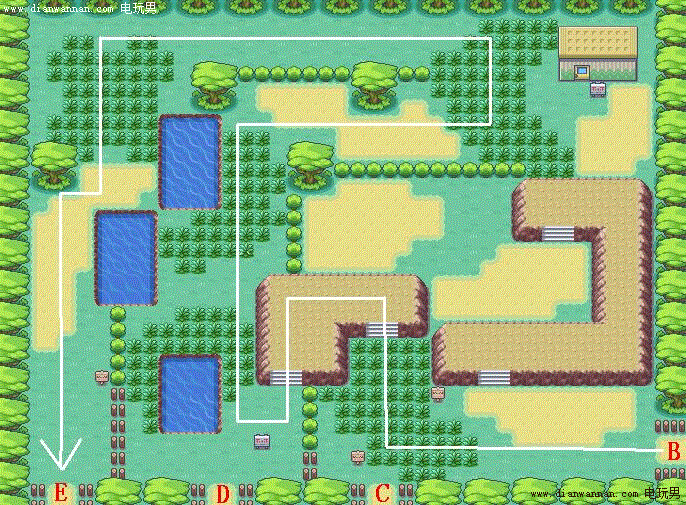好了忘左走吧,先去精灵中心补给一下,然后当然是K会馆了,会馆有看不见的墙,所以这里给出前的位置图(boss携带2只lv37瓦斯,lv39臭臭泥,lv43双蛋瓦斯)