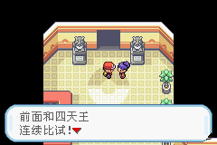 这里是4大天王的处所,但却需要跟5个人连续战斗,前4位每人手里各有5只精灵,尤其是最后的小茂有6只精灵,更是属性全面,要提前组织好队伍,中间可以吃药,但没有PC可以休息,所以之前要在商店处充分补给