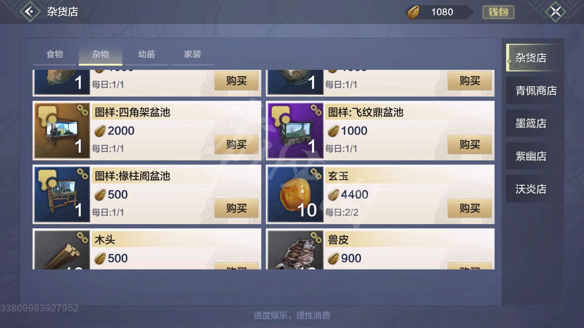 椽柱阁盆池、飞纹鼎盆池和四角架盆池的图纸在杂物店中可以购买。