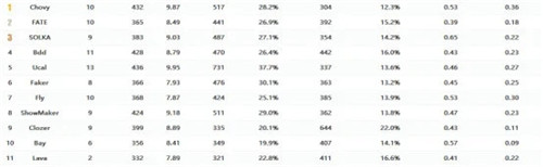 此外在选手数据中,无论是选手KDA综合数据还是FARM和团队综合贡献率,超威都稳居第一宝座,相信数据已经证实了超威这名选手的统治力,当然了毕竟英雄联盟并非一个人的游戏,也是期望HLE能尽快调整,不枉费中单超威这个大腿