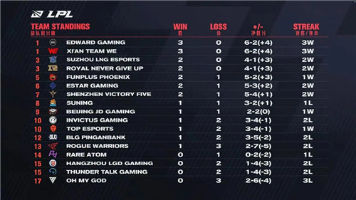 而在LPL新赛季的战队积分排名上,也出现了有趣的一幕,御三家WE、EDG和RNG分别排在前三,反而是上赛季的四皇开局不顺,目前的排名甚至都没有进入前五。EDG和WE的腾飞算是意料之中,毕竟选手的身价都摆在那里,而RNG也不甘落后,这多少有点意外,要知道他们在转会期几乎是没有什么大动作。