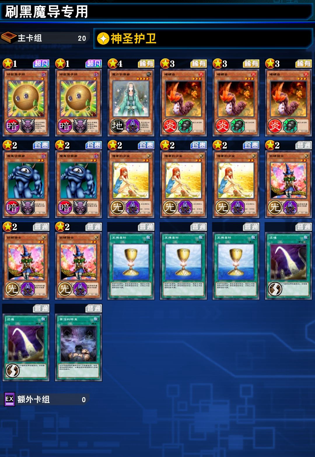 下面发下卡组,百分百过,不过满足不了三星要求,没办法。只要具备核心条件,还有其他卡组也能刷,比如能直接攻击对面的怪兽(核心条件:神圣守护+薄幸的少女)