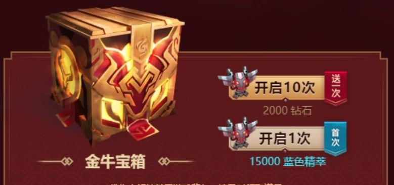同时开宝箱还能获得金牛币,金牛币也用来用来兑换超值奖励。开启一个金牛宝箱将获得24个金牛币,10连会赠送1个金牛宝箱,但只能获得240金牛币。
