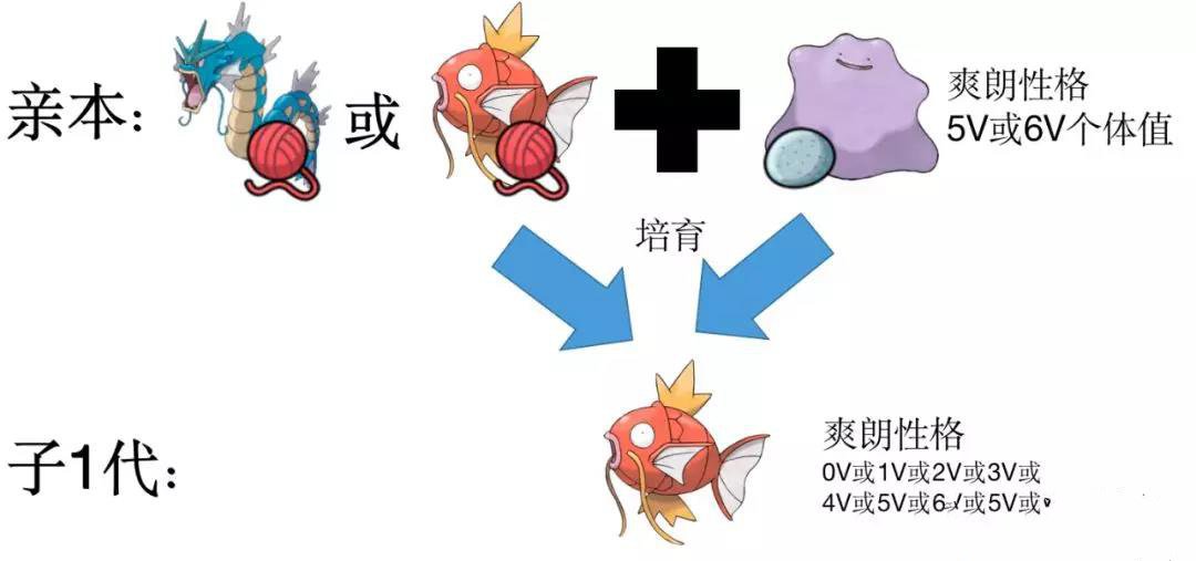 了解了上面我们开始来举个例子,这样大家更容易理解,例如我们想一只爽朗性格个体值满的鲤鱼王。那先需要一个爽朗个体值6V或5V的百变怪(只要又一直符合要求的百变怪就可以一直用),带上不变之石将其放入饲育屋(游戏中饲育屋有两个,一个在五号路,一个在旷野地带,位置都非常适合孵蛋)。