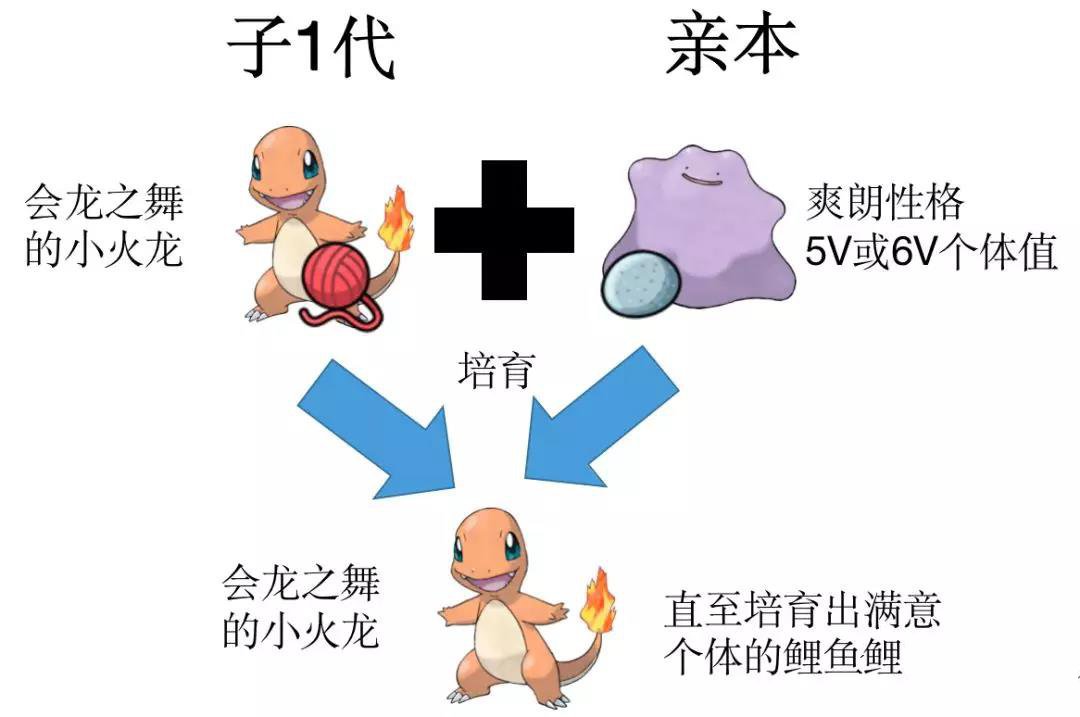 当新出生的小火龙学会龙之舞后,我们就可以按照第一个例子来让会龙之舞的小火龙与百变怪生育出正确性格且优质的个体。