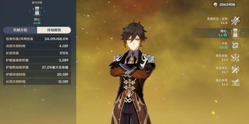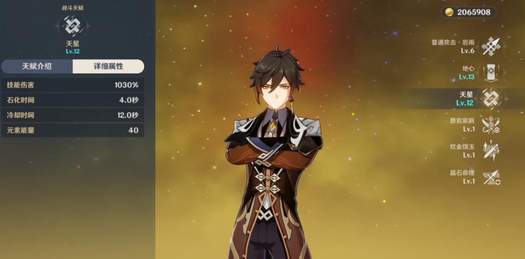 测试人物:钟离【岩属性,必杀所需元素能量:40】