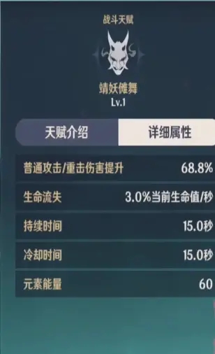 5命加成:靖妖傩舞(元素爆发)的技能等级提高3级,至多提升至15级。