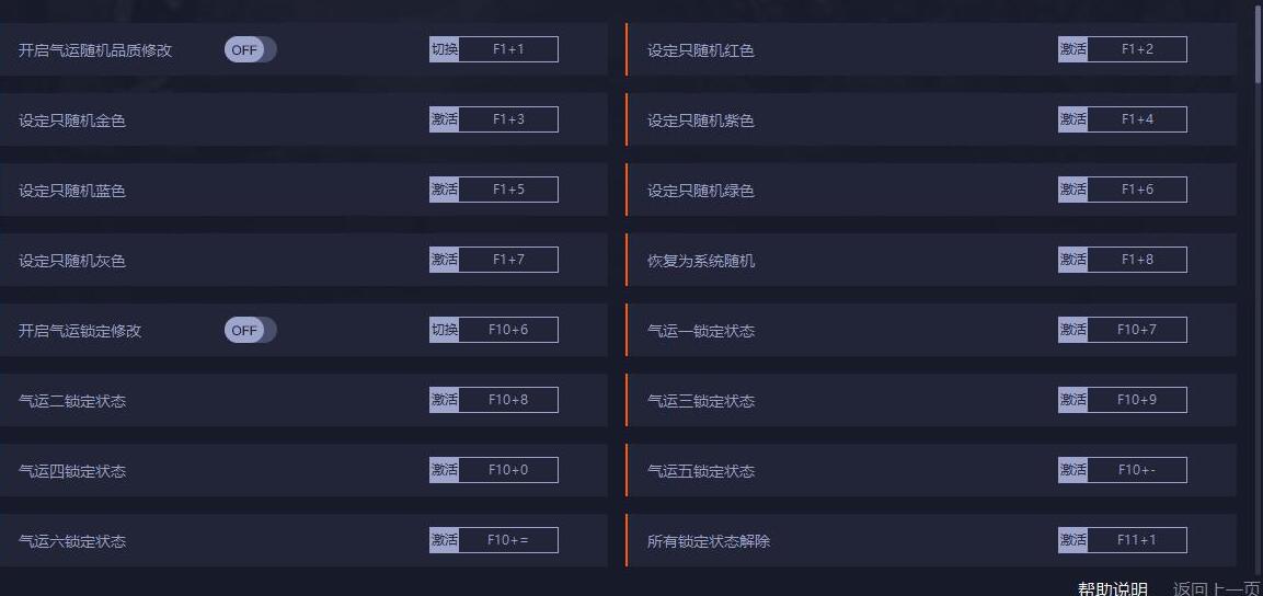 1.开启气运锁定修改:开启后,随机一次气运,使用气运锁定修改项。气运选择完成后使用"所有锁定状态解除"解除所有锁定后进入游戏。