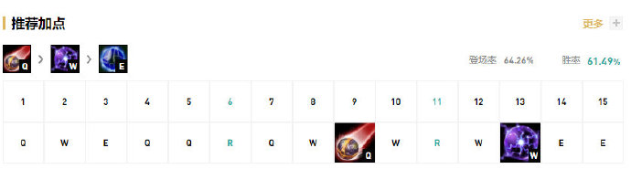主Q副W:Q技能是发条主要的输出技能,技能CD短而且灵活运用Q技能可以持续打出高额AOE伤害,并迅速清理兵线。副加点的W技能拥有极高的AOE伤害,并且能够大幅降低对手的移速并为己方队友提供方高额移速加成。