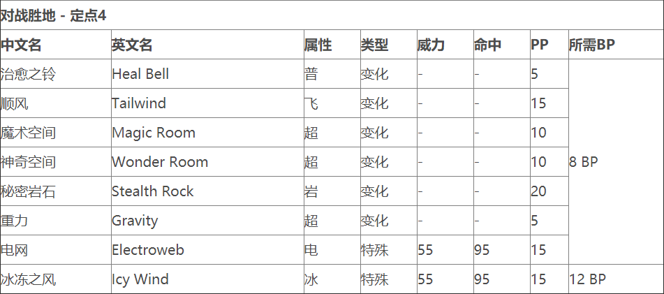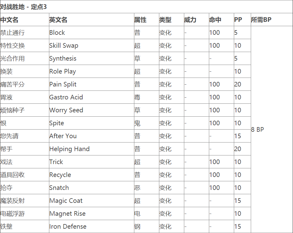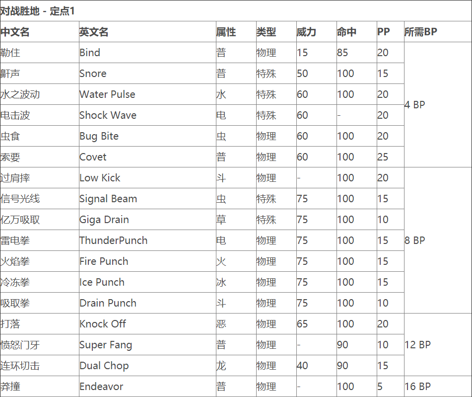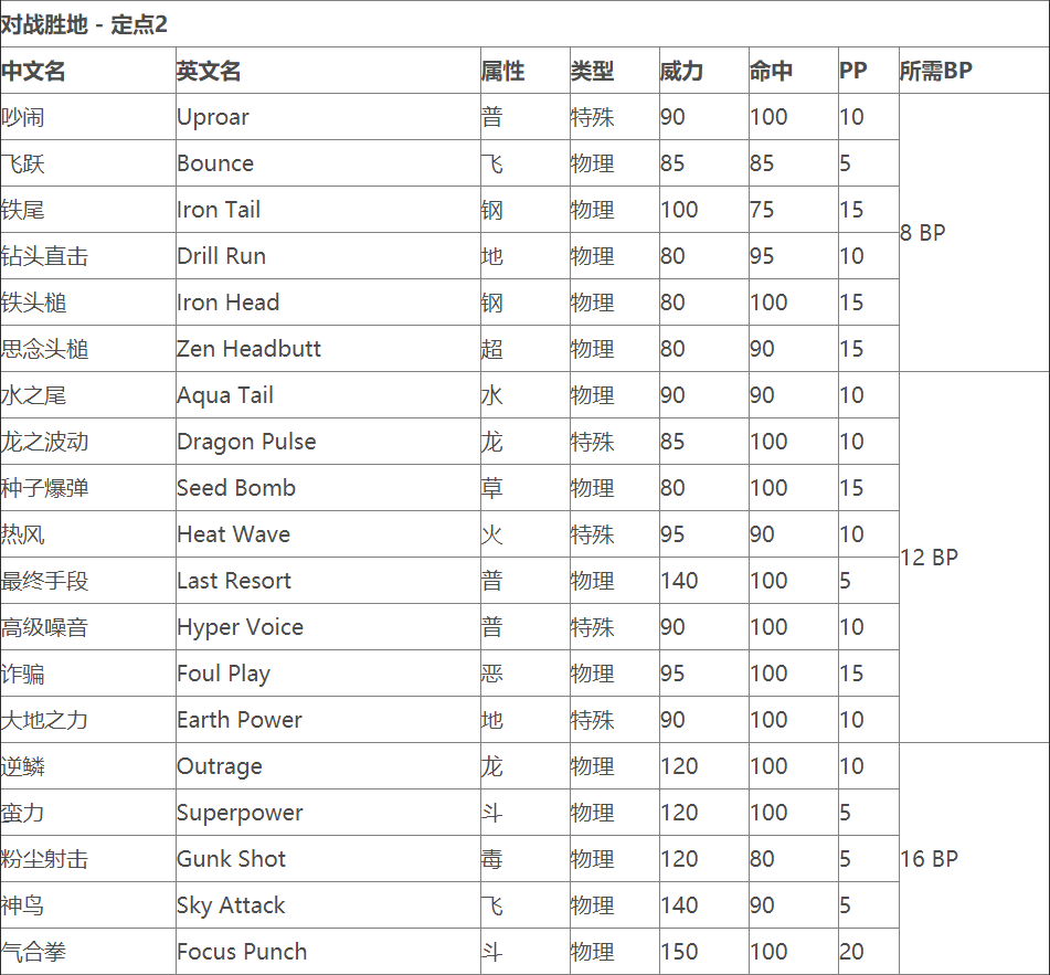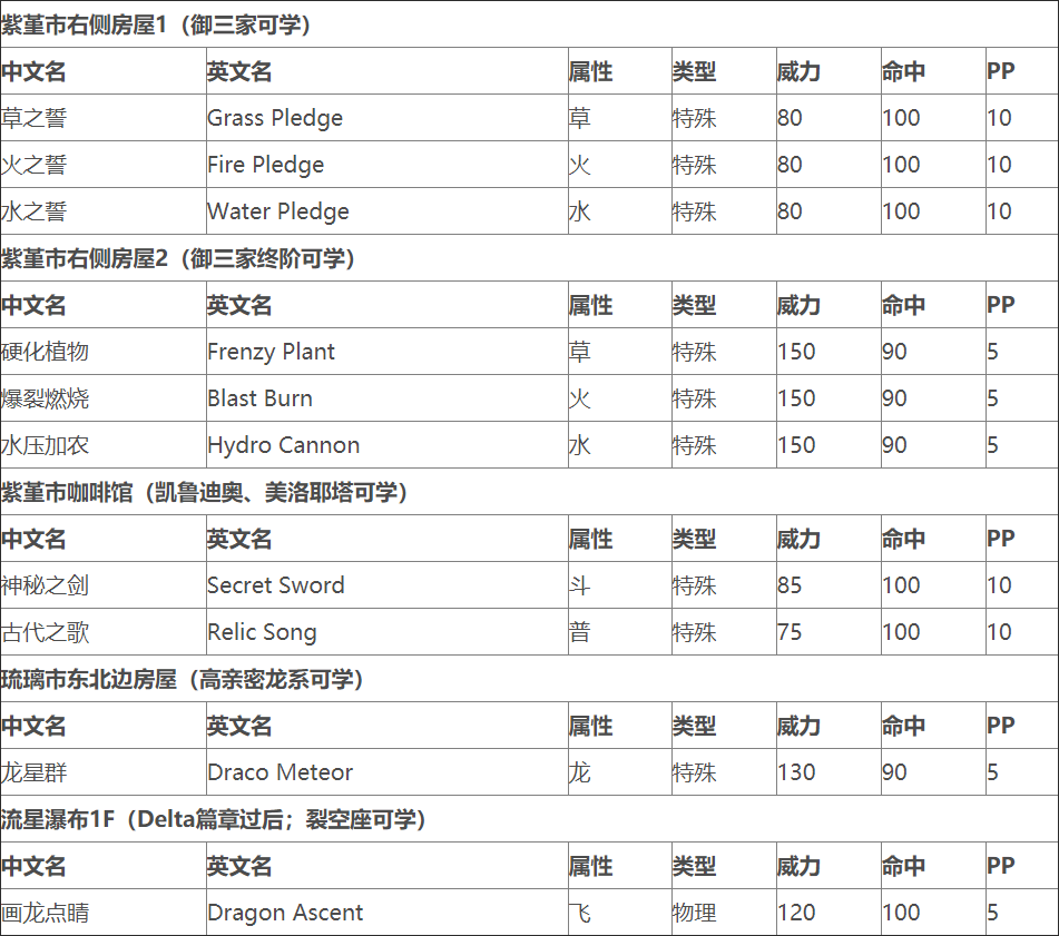 口袋妖怪红/蓝宝石宝可梦定点技能大全分享