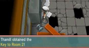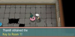 前几个房间进入后会有几对双打对战,剩下锁住了,暂时无视。从此处潜水进入一个水下通道,向右走会发现一个可以上浮的地点,上浮。如下图的涂鸦所示,一直向前与带泳圈的小萝莉对话会给你1号房间的钥匙。再次潜水回到1号房间,调查如下图所示的书柜获得2号钥匙。