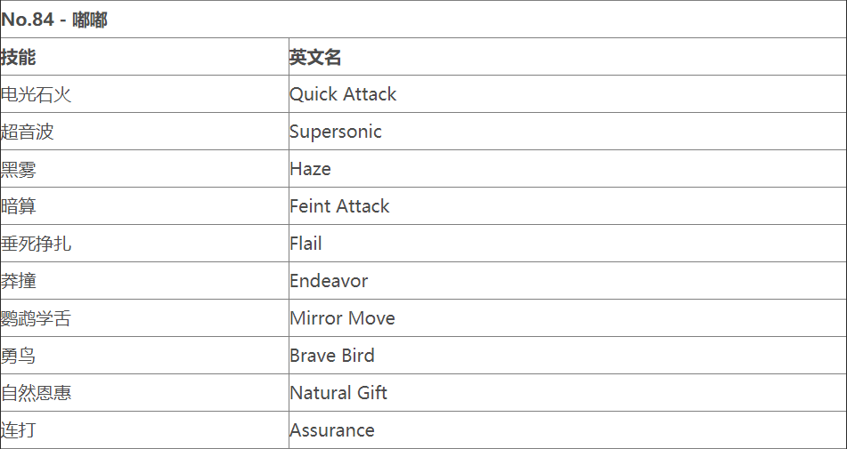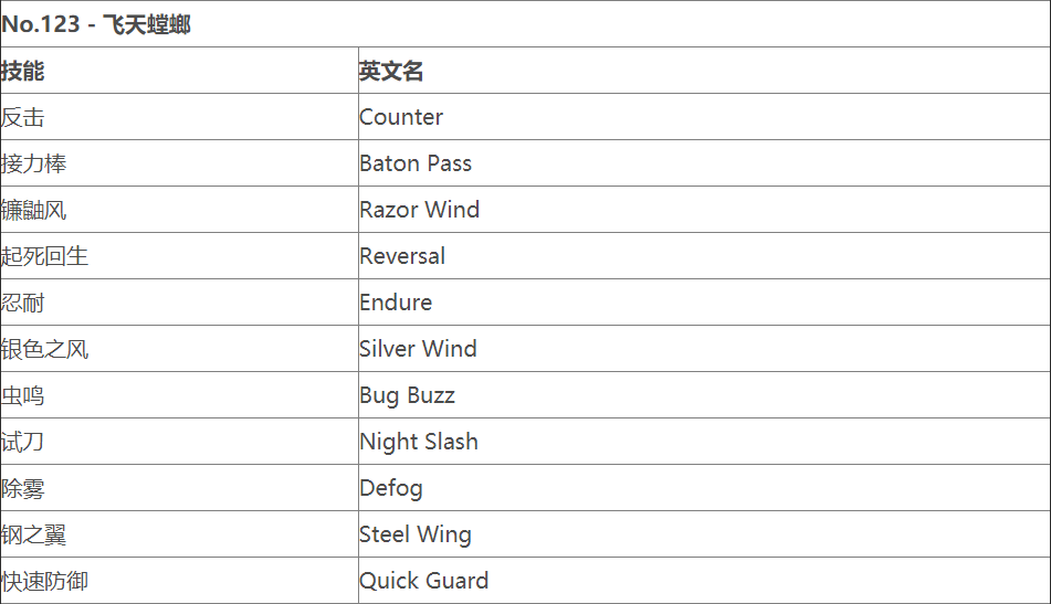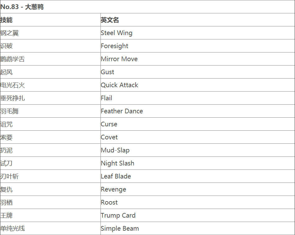 如果父方与母方同时拥有子方怪兽的升级技能表上的技能,则该技能会遗传给子方。
